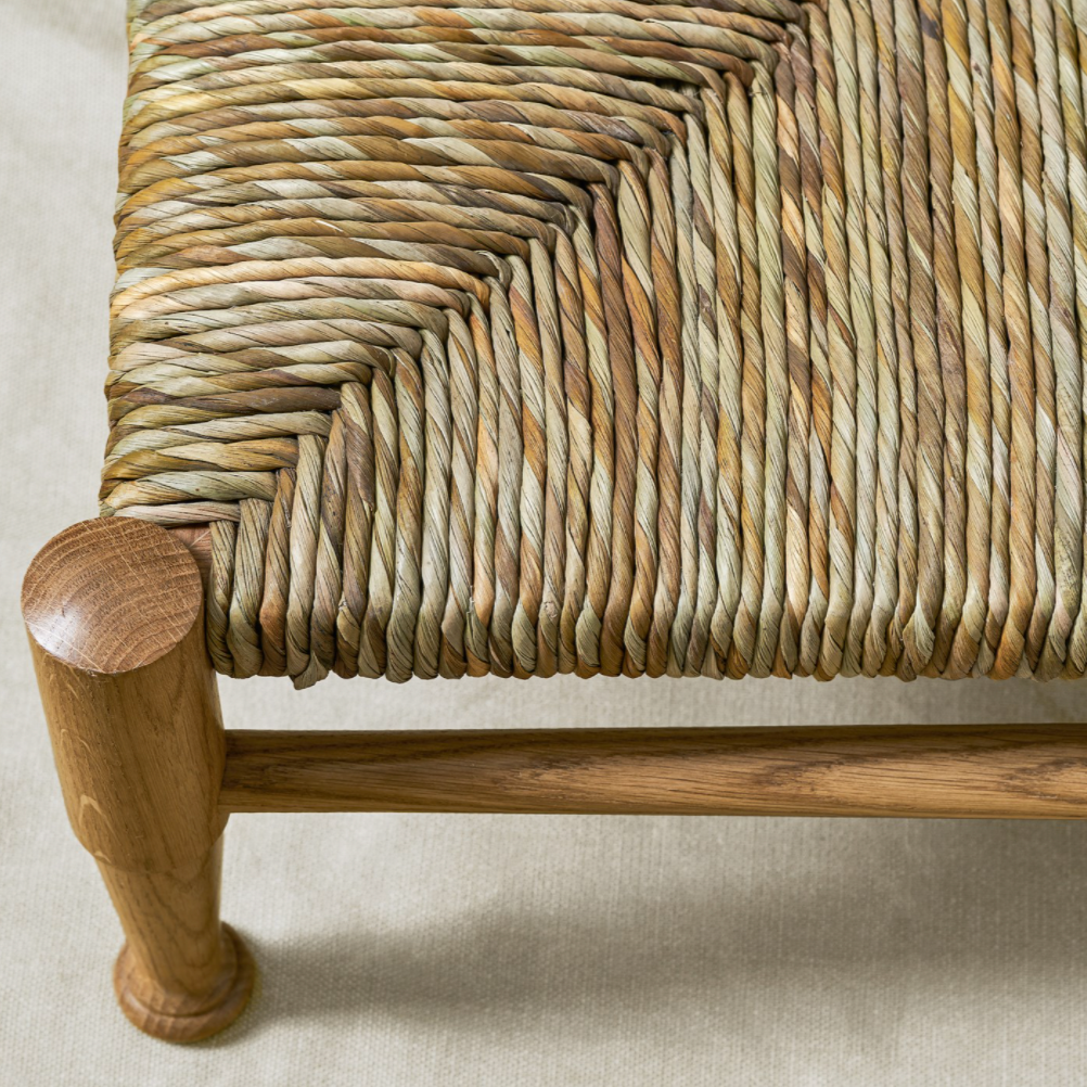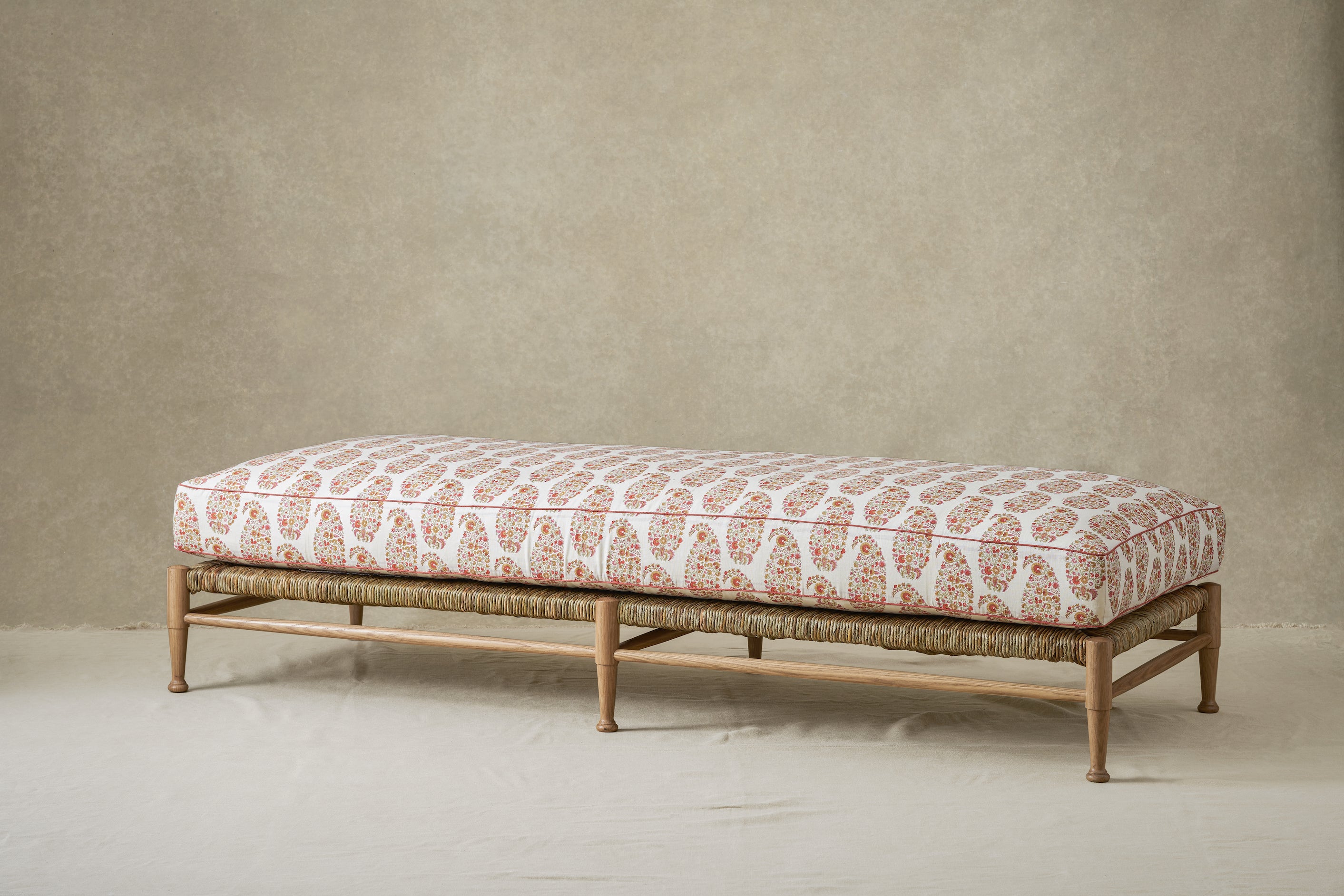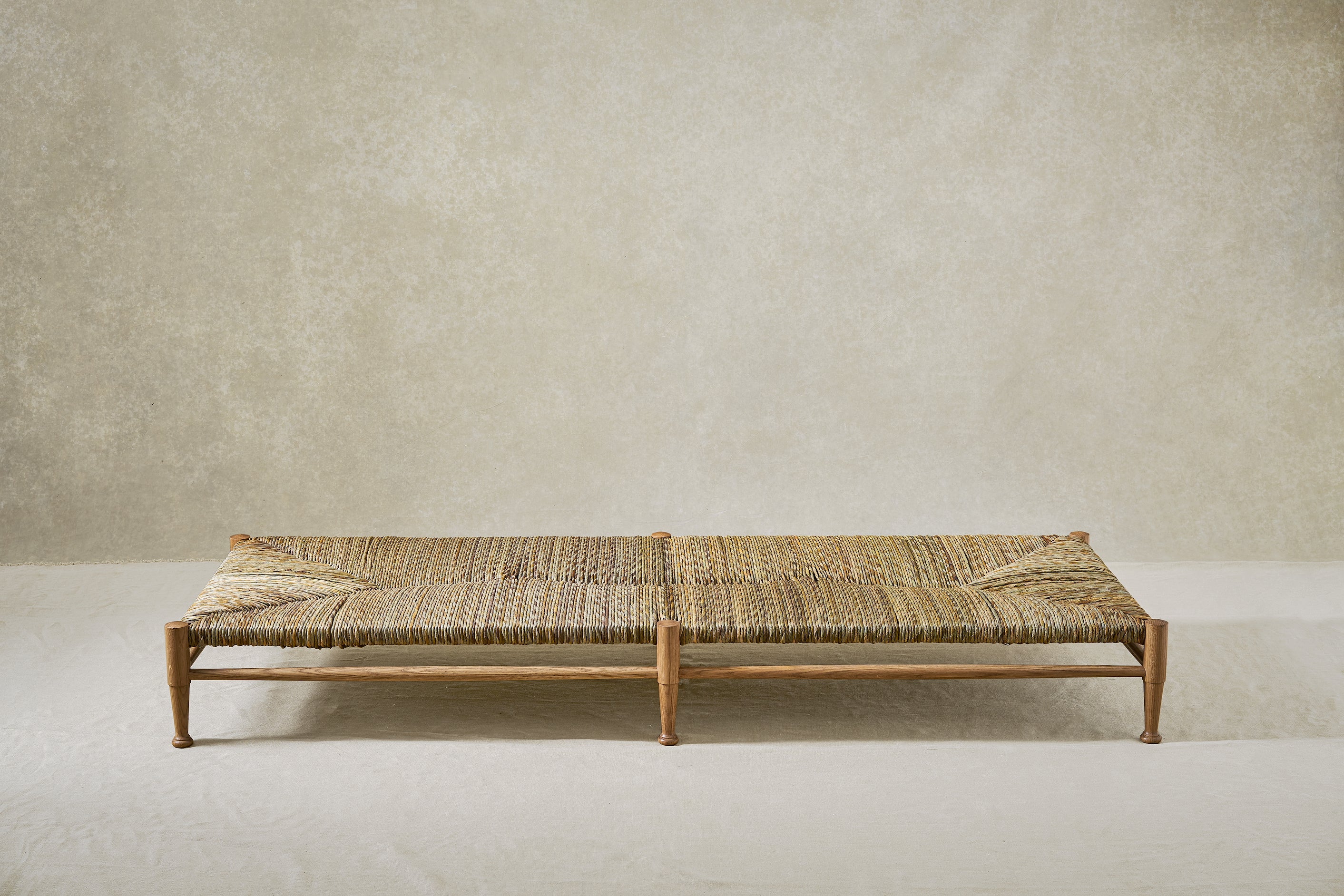 The Rush Daybed has a solid oak frame, with turned button foot detailing, and a handwoven rush seat. A modern take on traditional, English country furniture.