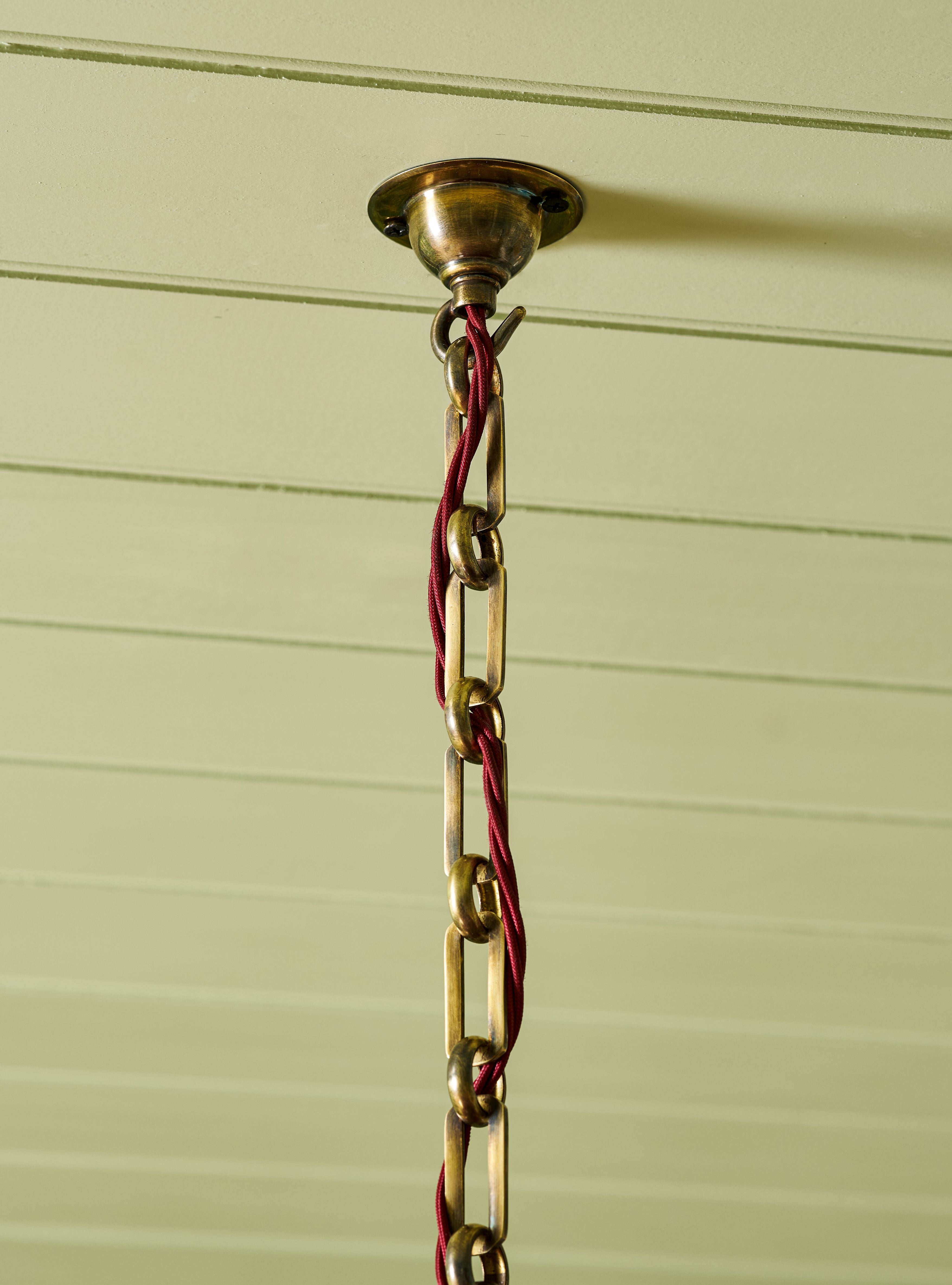 Each pendant comes with a 1m antique brass chain and a ceiling rose.