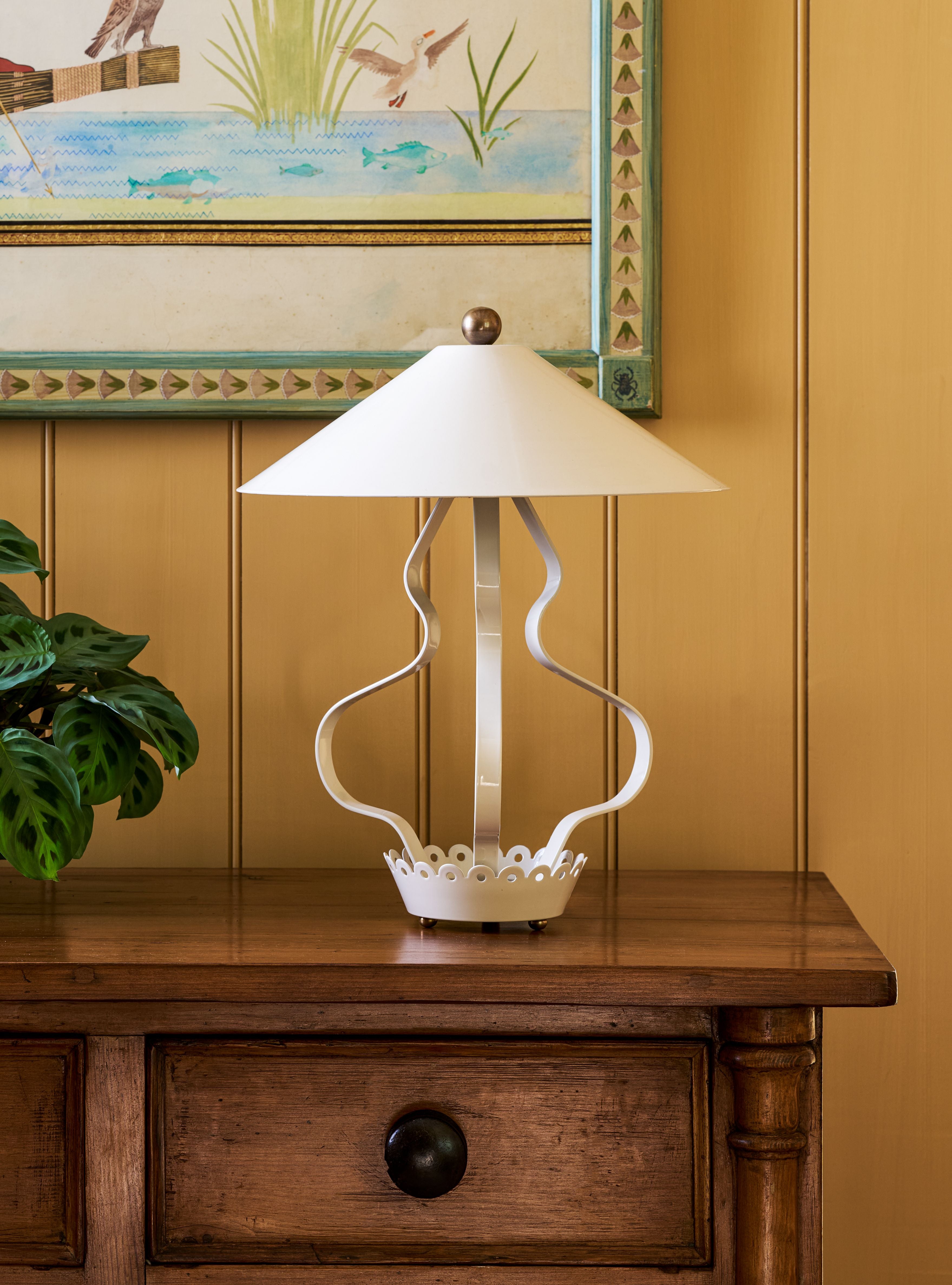 Inspired by an antique pendant sourced in a French market, the Fyning Table Lamp stands out for its sculptural and distinctive form, bringing a sense of elegance and individuality to any corner. Handcrafted in the UK from brass, each piece is carefully antiqued and finished in three timeless colourways: Ivory, Red, and Green.