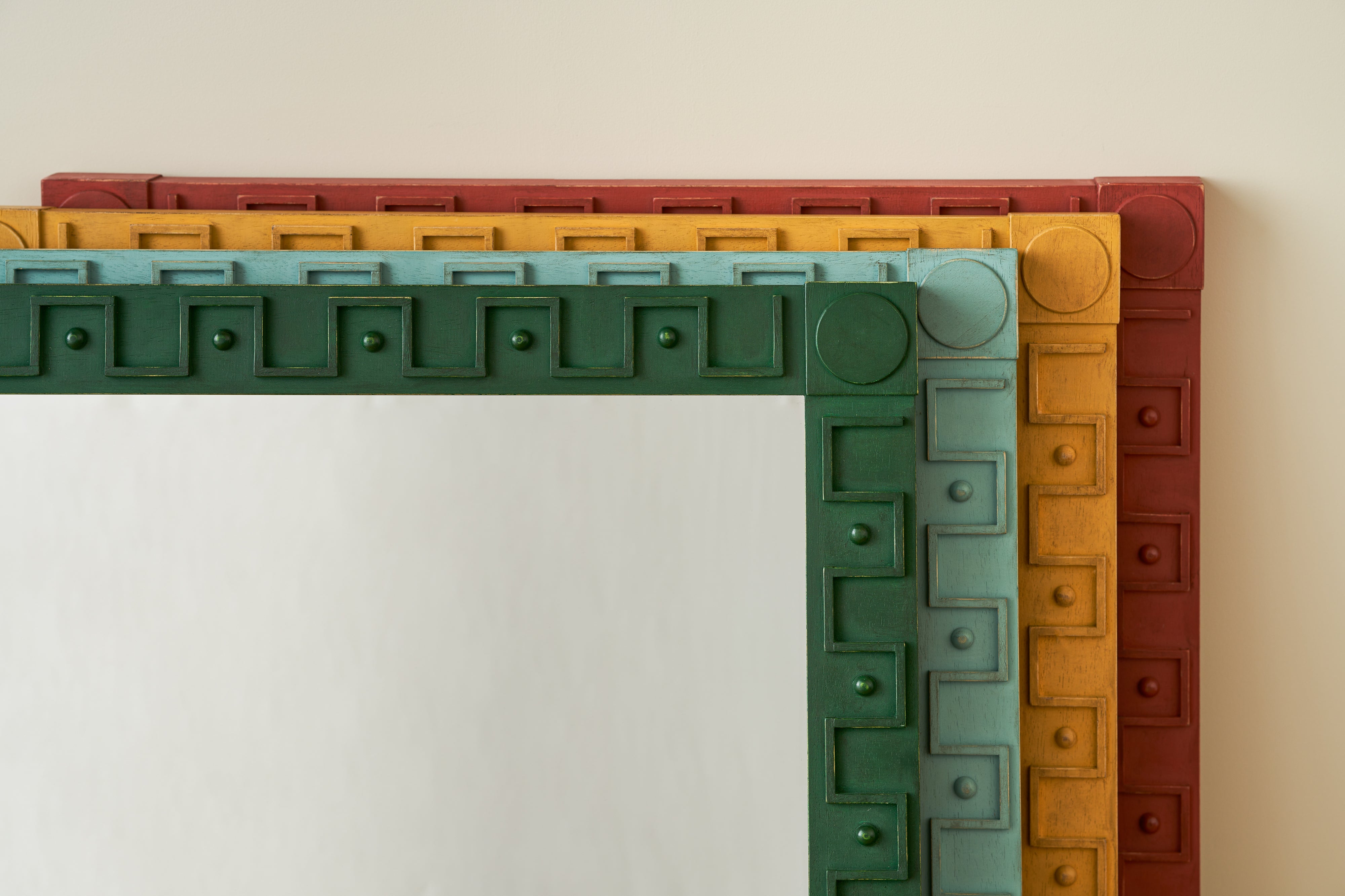 The Greek Key Mirror offers a contemporary interpretation on a traditional design. Each mirror is individually made by hand in the UK by skilled makers and it comes in our standard size of 625mm x 825mm (to outside of frame), with custom sizes available. The classic Greek Key design dates back to antiquity; its geometric pattern made up of one long continuous line that folds back on itself repeatedly, adds a simple yet decorative touch to interiors. The bolder paint colours have been lightly antiqued to give a nod to its tradition, but also allow them to sit in traditional or contemporary interiors.