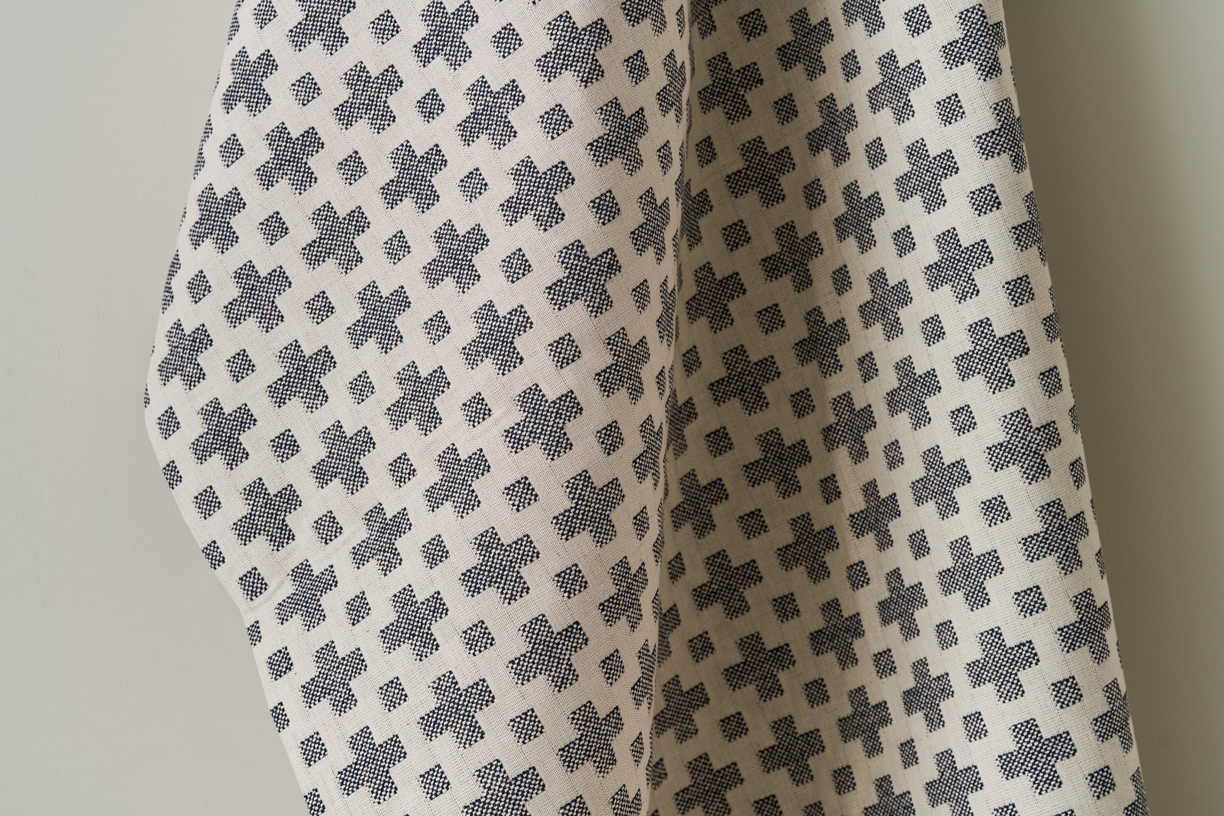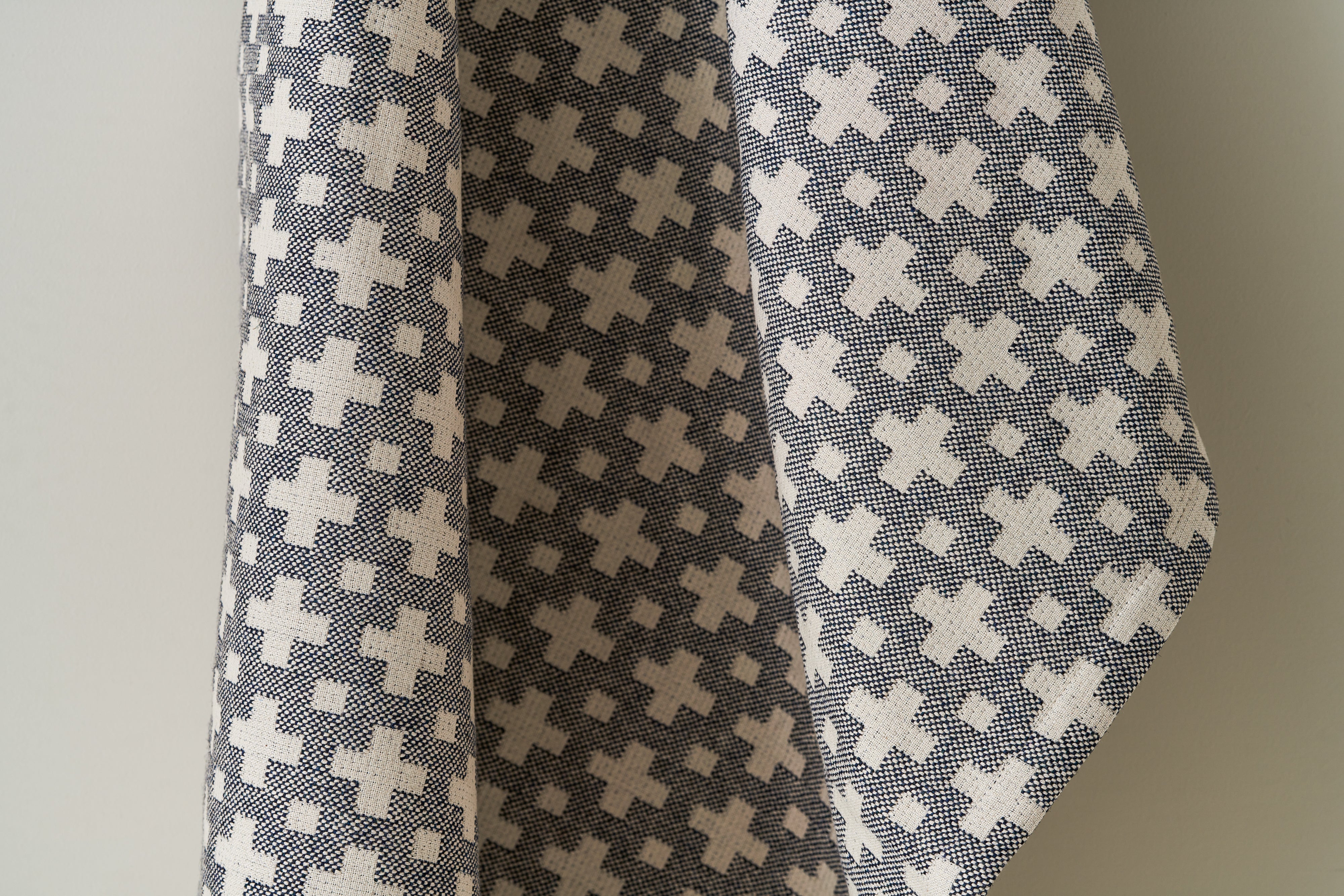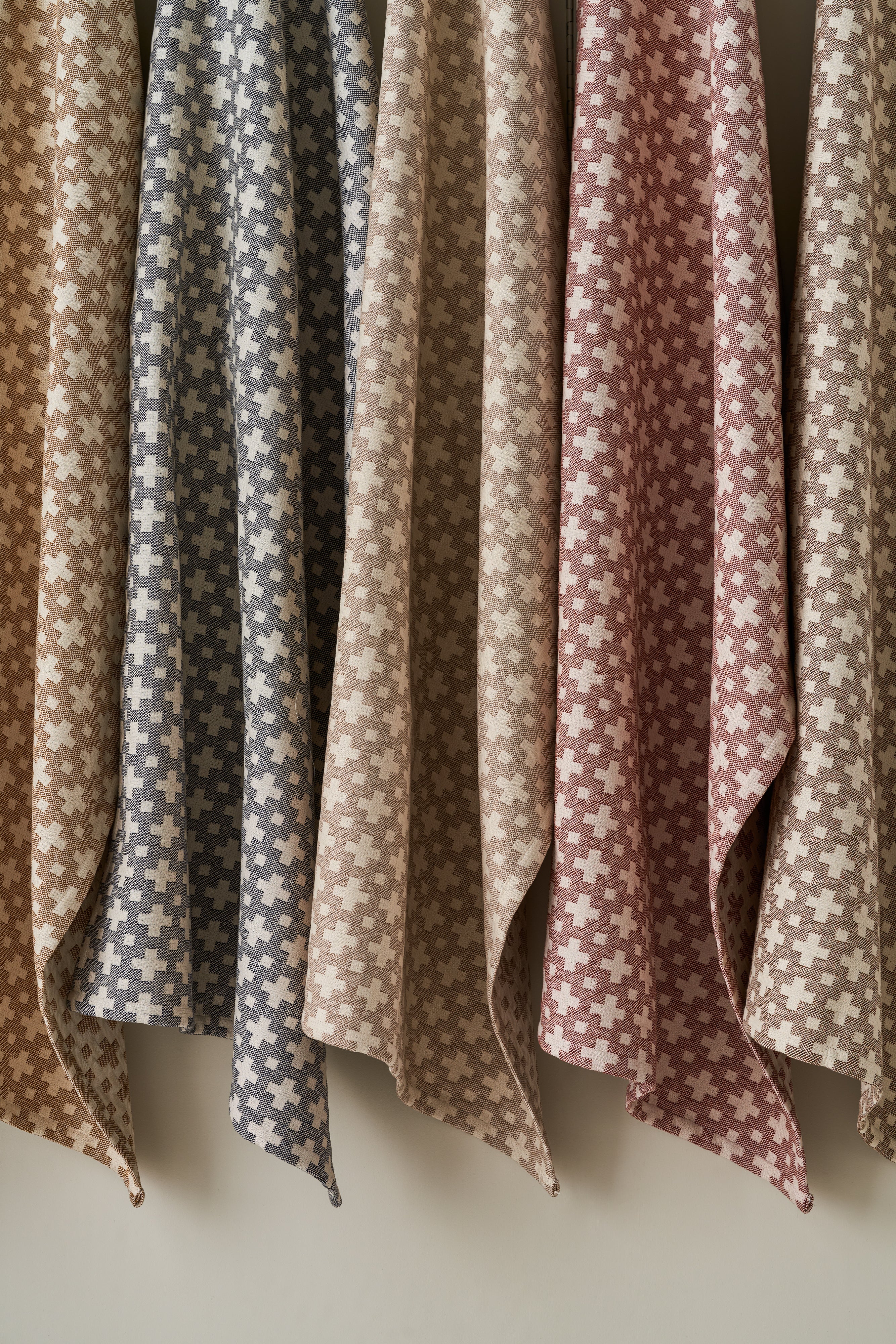 The Kiss Cross Collection is our first woollen fabric collection, and it's available in seven different colourways. The fabrics are reversible, with a richer tone on one side and a paler one on the other, enabling them to work beautifully in any setting. We loved playing with the combination of using the graphic and contemporary cross motif with age-old weaving techniques in a mill that's been operating in the UK for over 100 years. The result is a beautiful and textured weave that's inviting and cosy, and they'd work brilliantly in a traditional or contemporary interior.