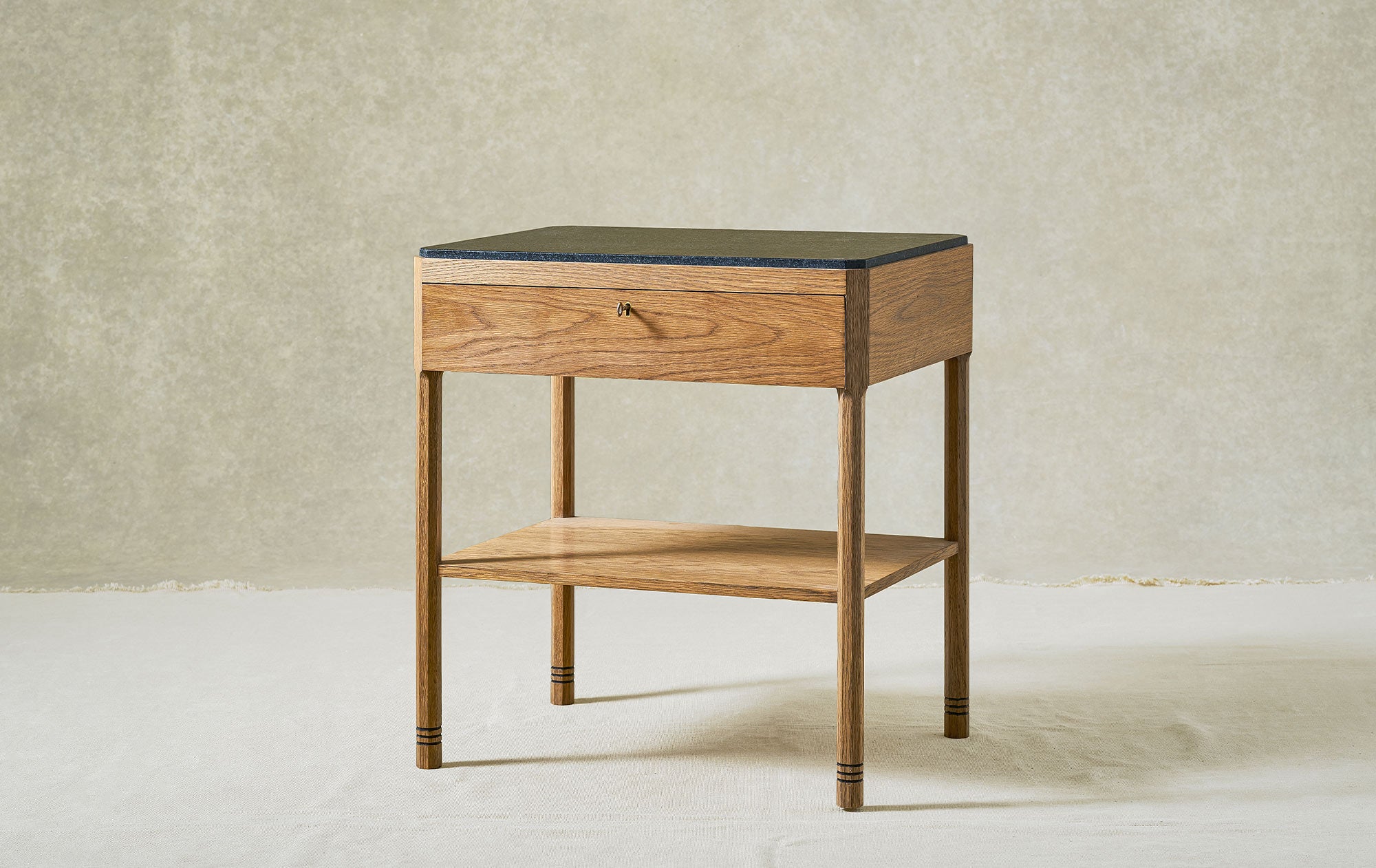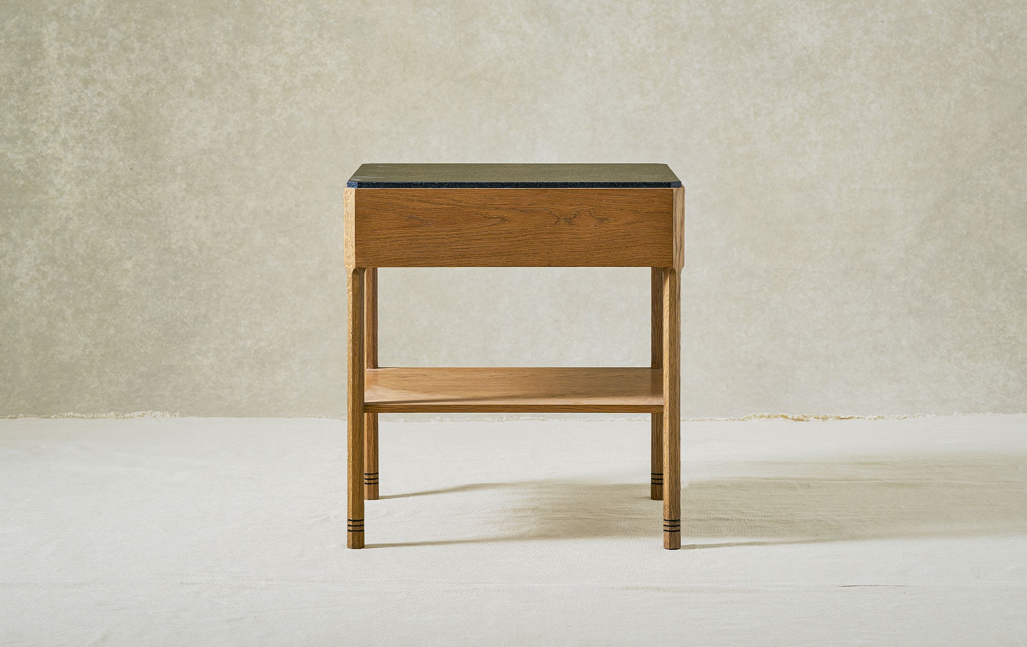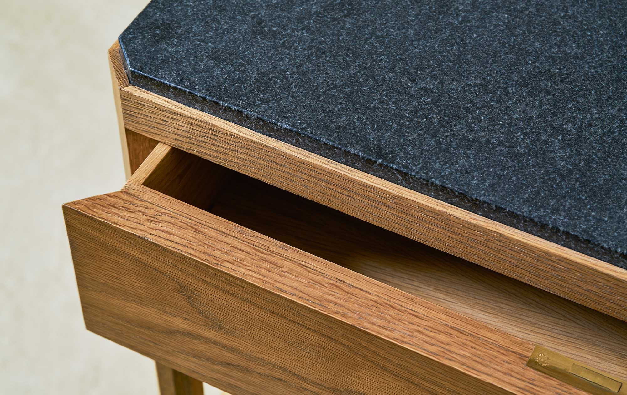 The Sidney Side Table, is made from solid oak, has a stone top and octagonal legs with band detailing. It's a simply but beautifully crafted table, suitable for use as a bedside or side table in contemporary and classic interiors.