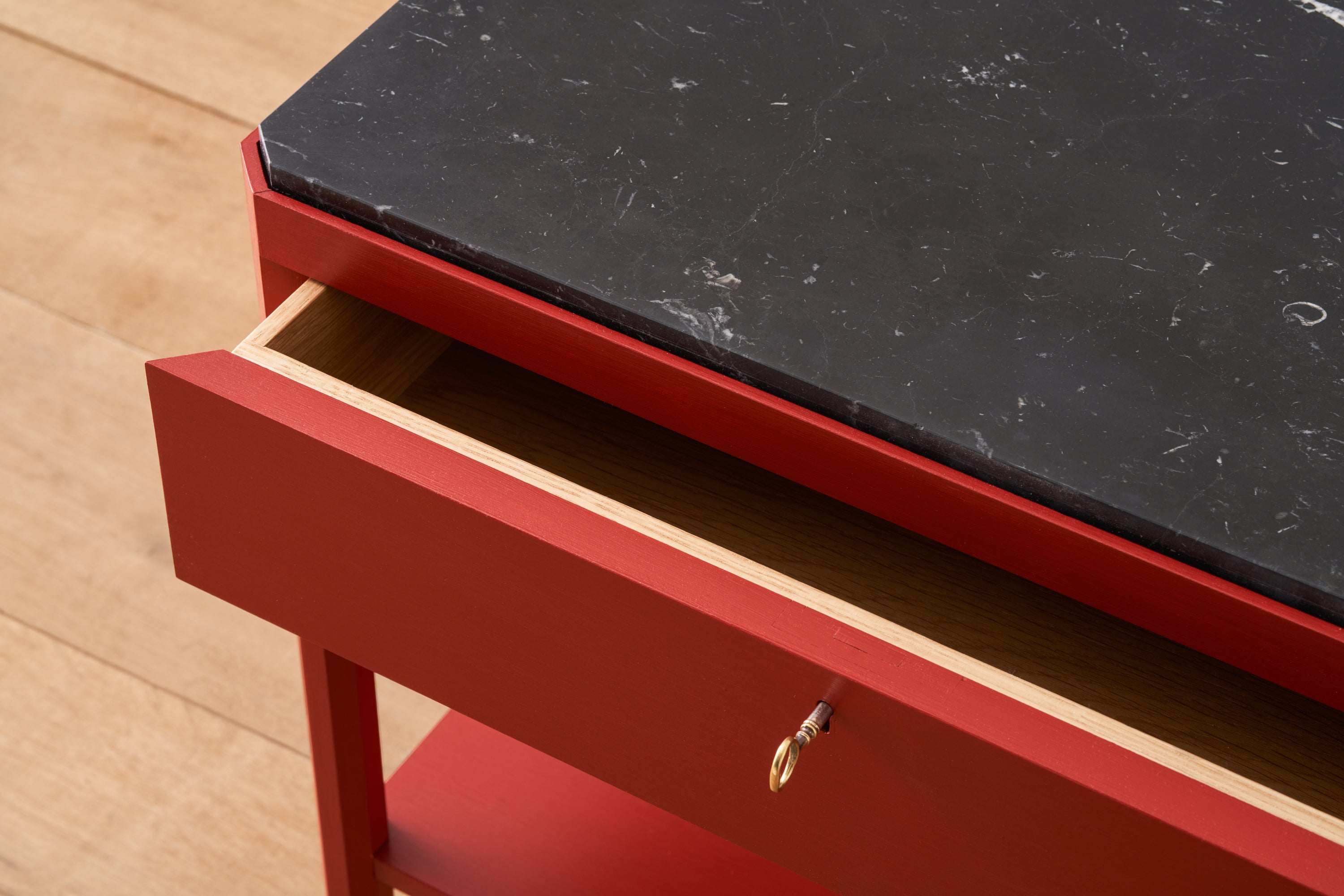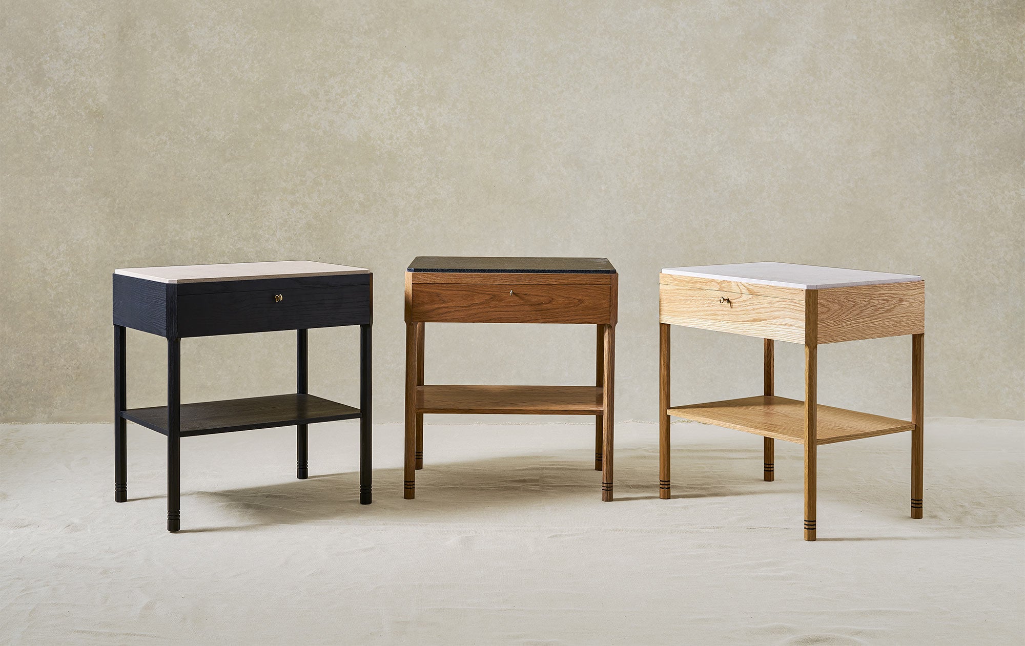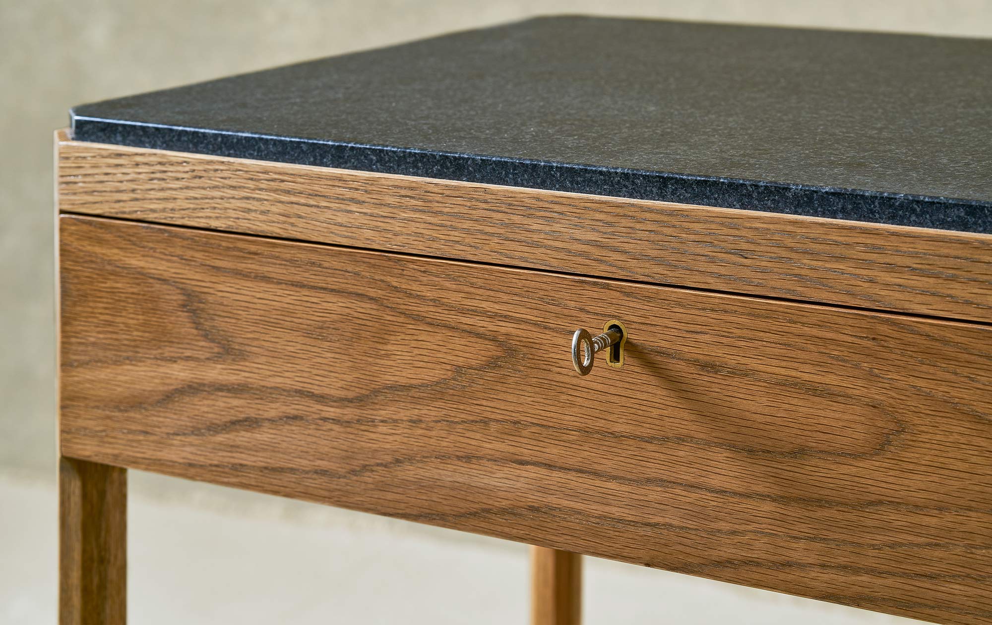 The Sidney Side Table, is made from solid oak, has a stone top and octagonal legs with band detailing. It's a simply but beautifully crafted table, suitable for use as a bedside or side table in contemporary and classic interiors.