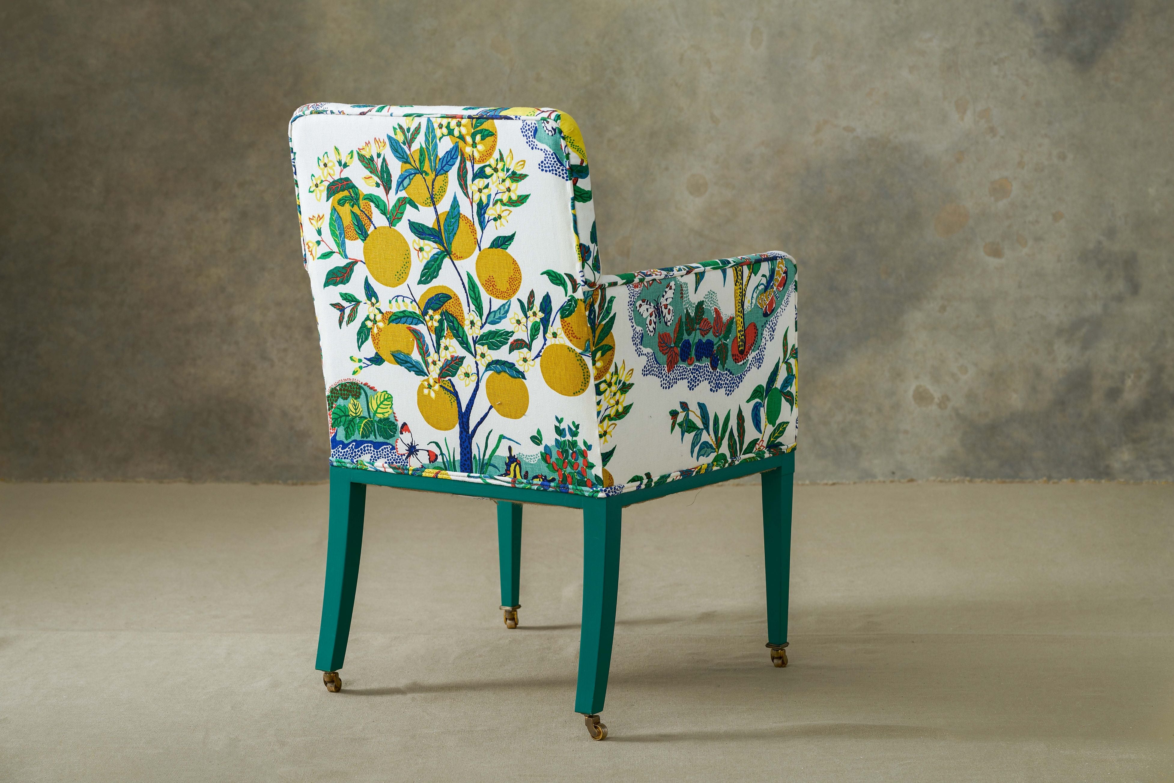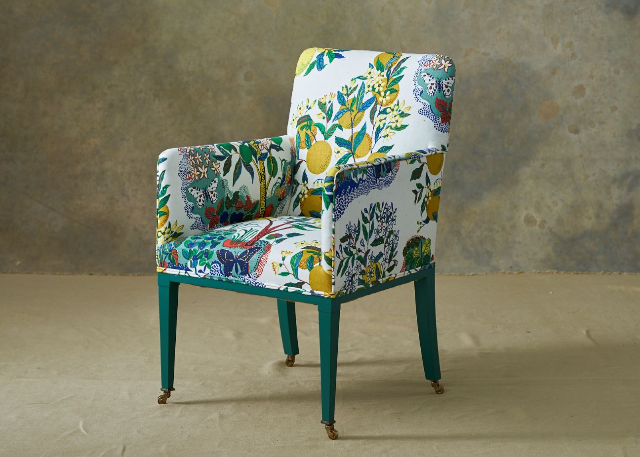 Classic and versatile, the Sussex chair is handmade and upholstered in the UK. It features a deep seat, straight arms and castor feet making it an adaptable chair perfect for a multi-purpose space.