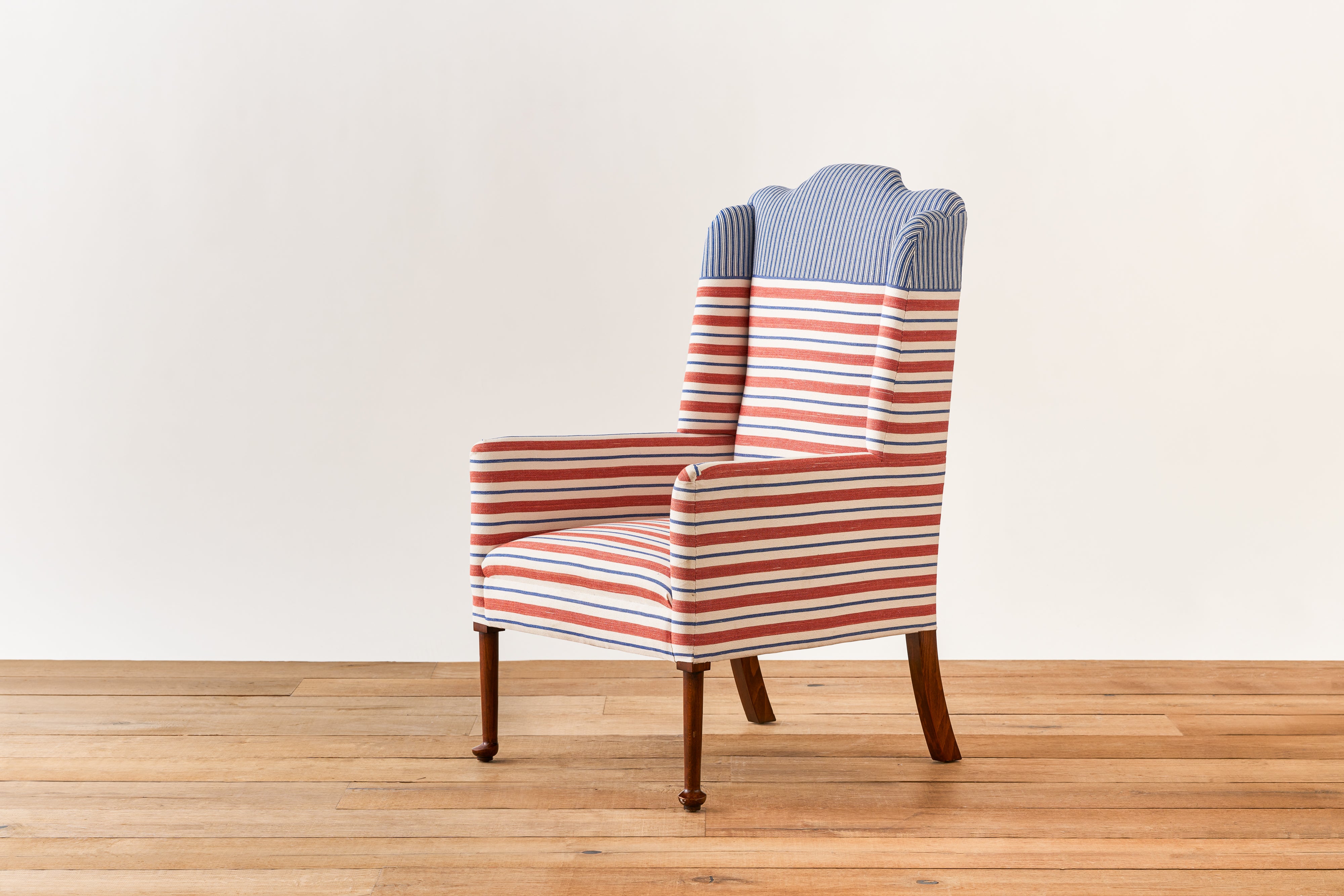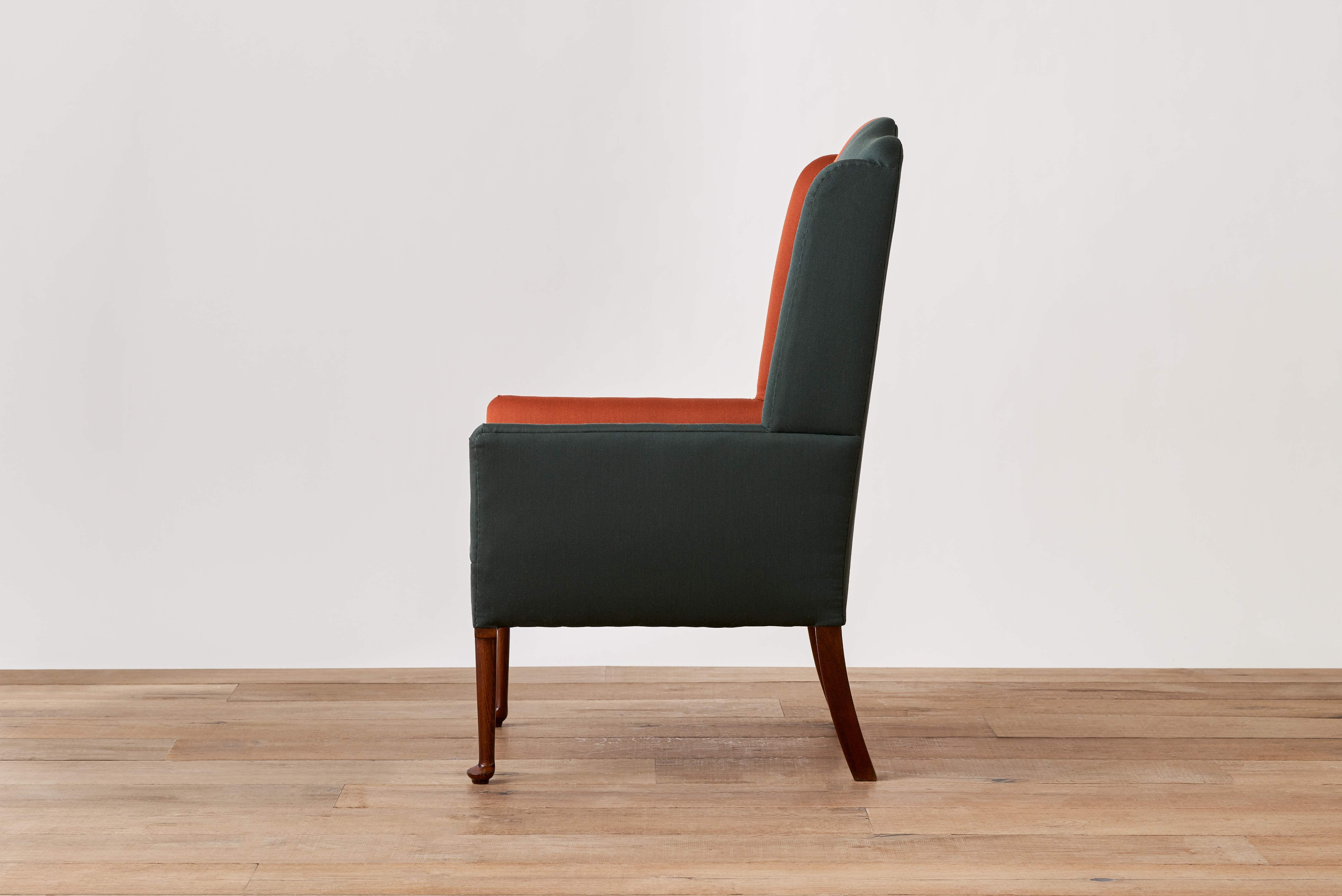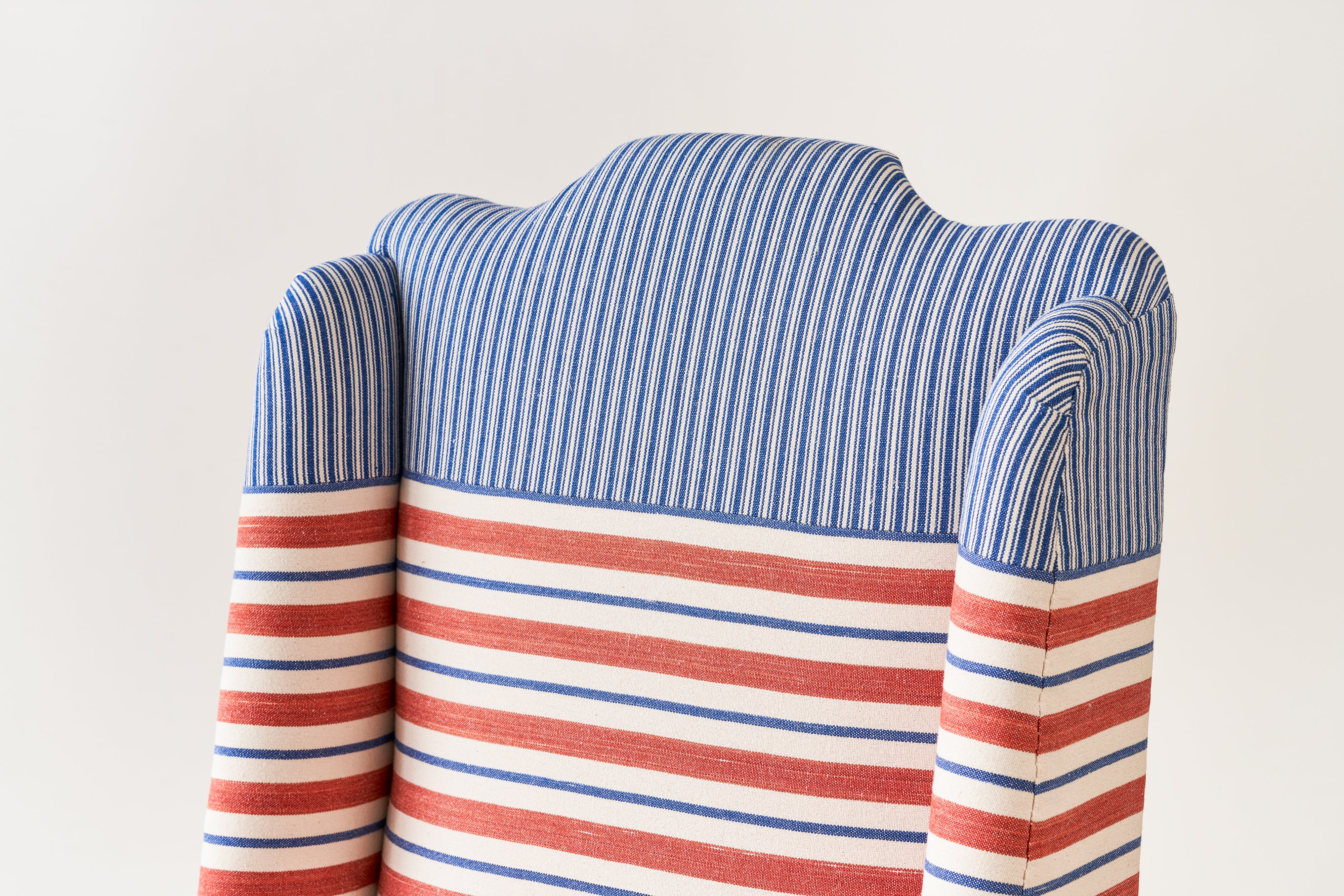 Expertly handmade in the UK, the Harting Wing Chair takes inspiration from an antique sourced by Susie and has been thoughtfully reimagined. The timeless yet refined design features a beautifully shaped back, square armrests, and traditional pad feet, and it is made from solid beech. We have combined two of our collection fabrics here and contrasted their direction for some added detail, however the chair can be upholstered in any fabric of your choice and requires 6.5m.