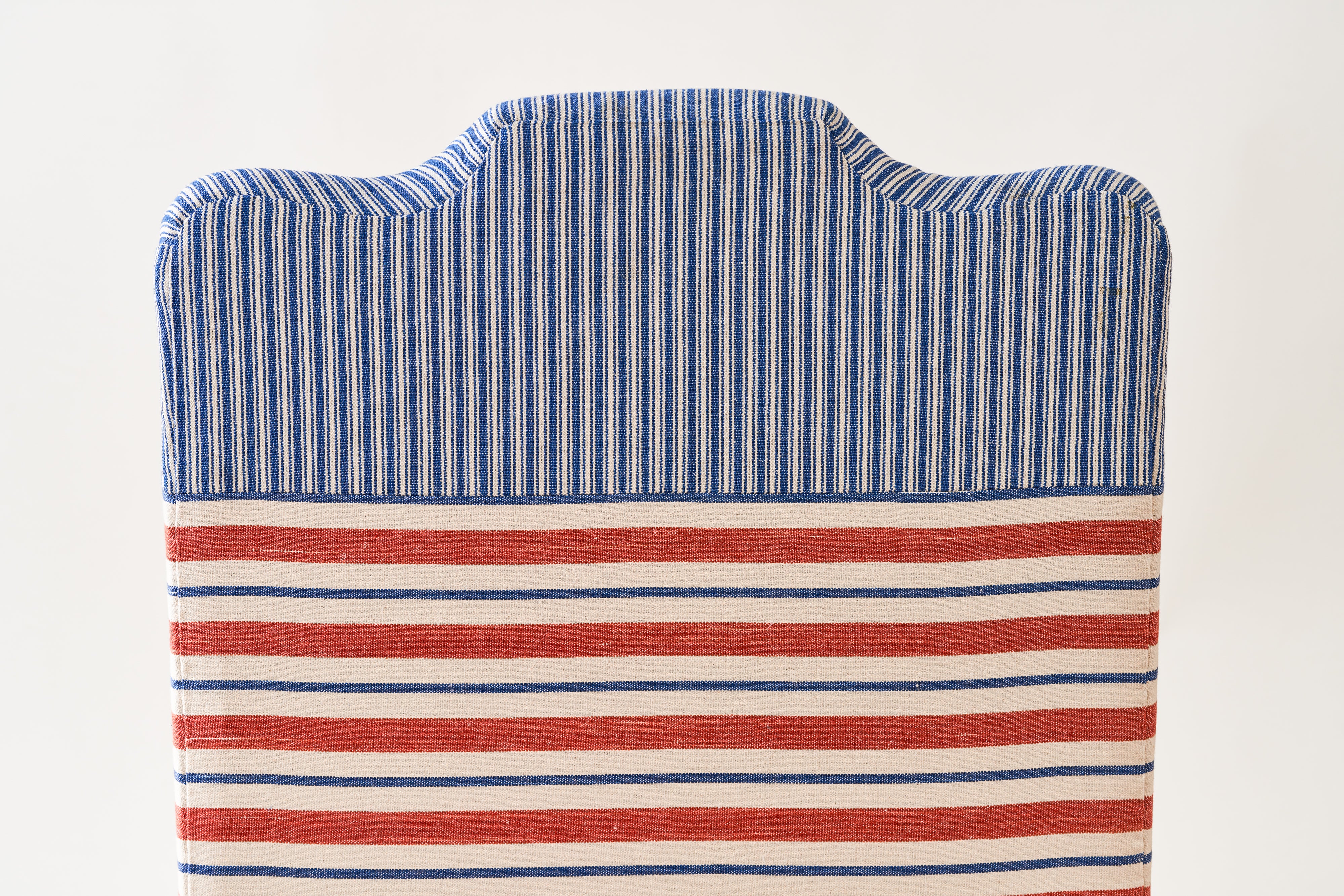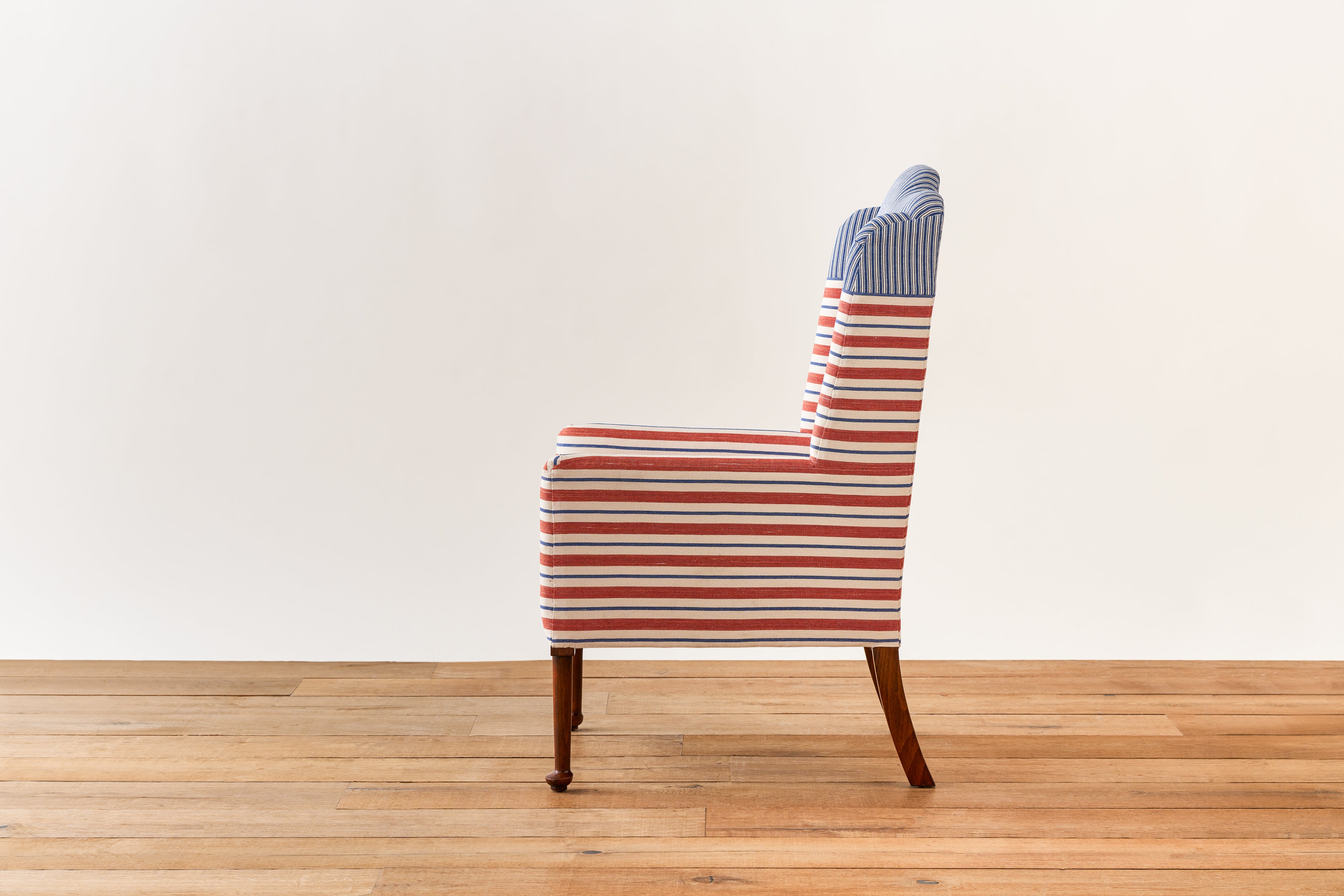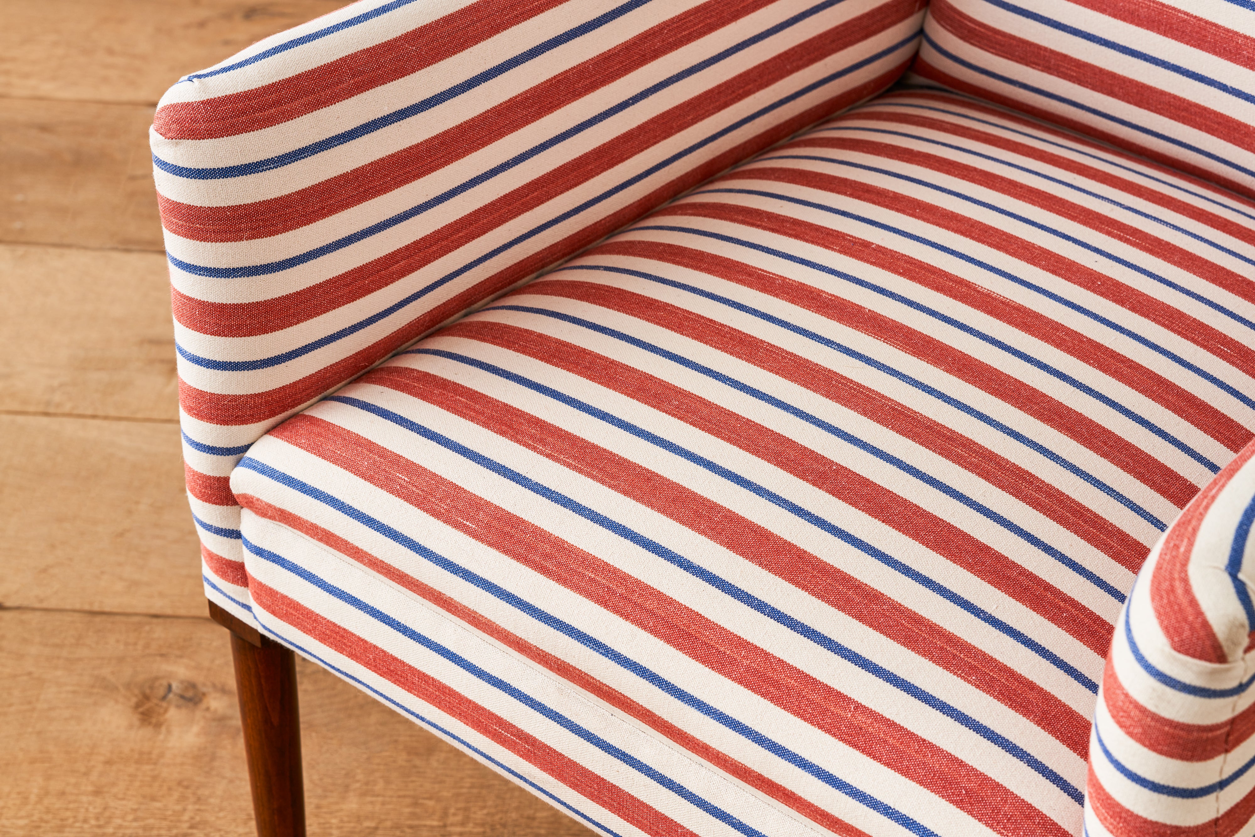 Expertly handmade in the UK, the Harting Wing Chair takes inspiration from an antique sourced by Susie and has been thoughtfully reimagined. The timeless yet refined design features a beautifully shaped back, square armrests, and traditional pad feet, and it is made from solid beech. We have combined two of our collection fabrics here and contrasted their direction for some added detail, however the chair can be upholstered in any fabric of your choice and requires 6.5m.
