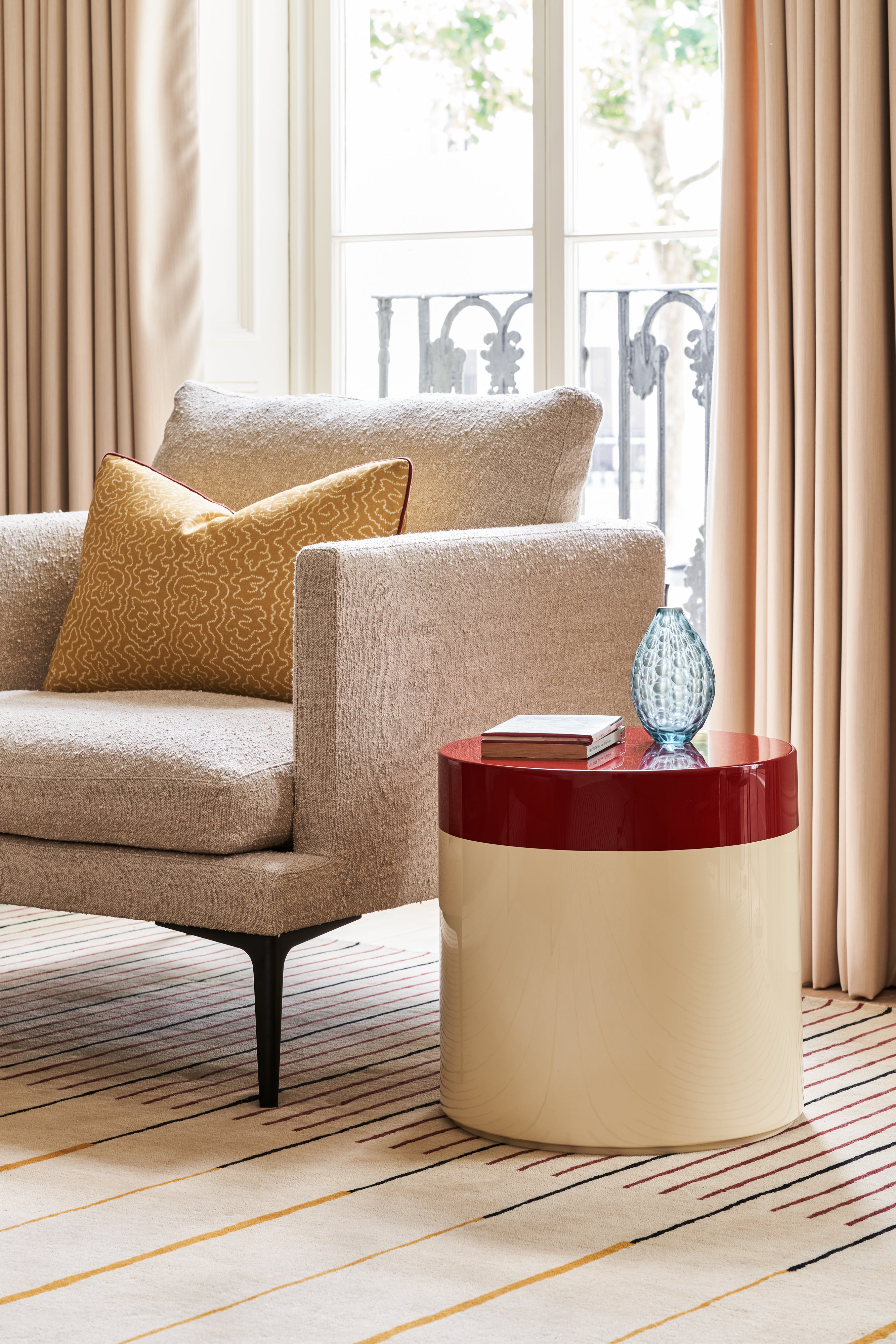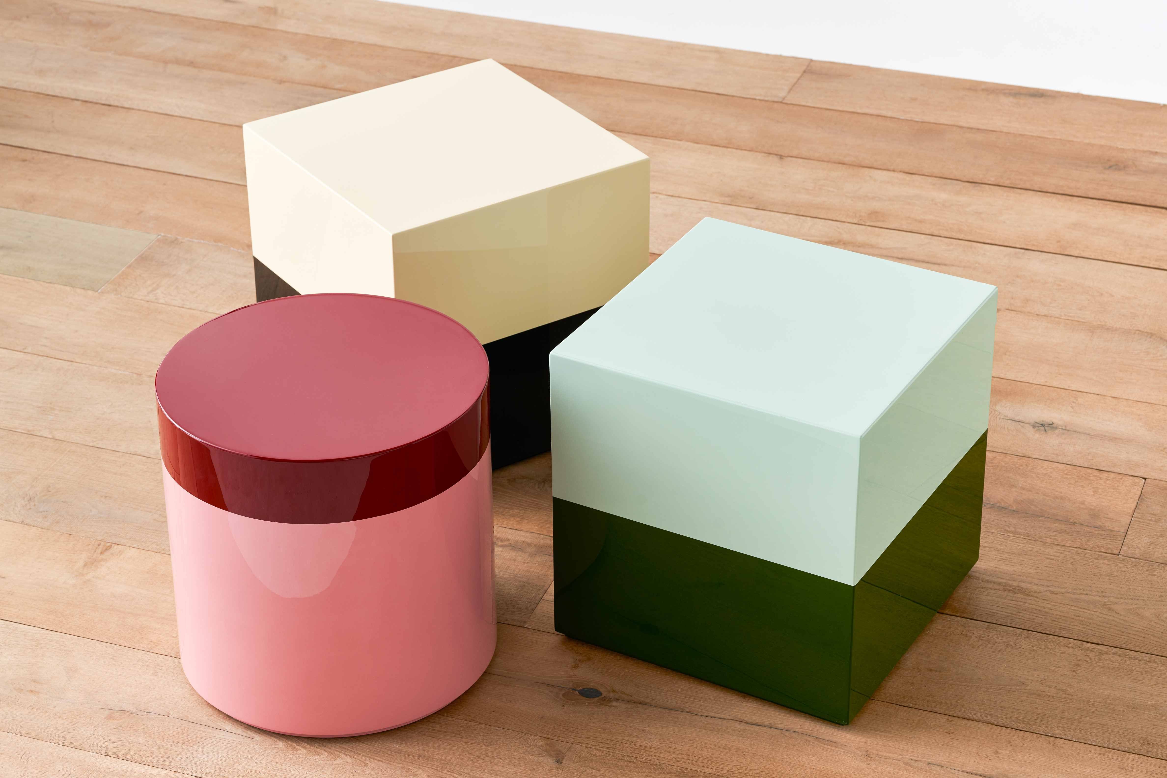 Part of our Buffed Up Lacquer Collection, we're excited to introduce our Two Tone Side Tables, available as a cube or a cylinder. The smooth and shiny surfaces contrast beautifully with upholstered pieces & add a bit of modernity and light to a space.