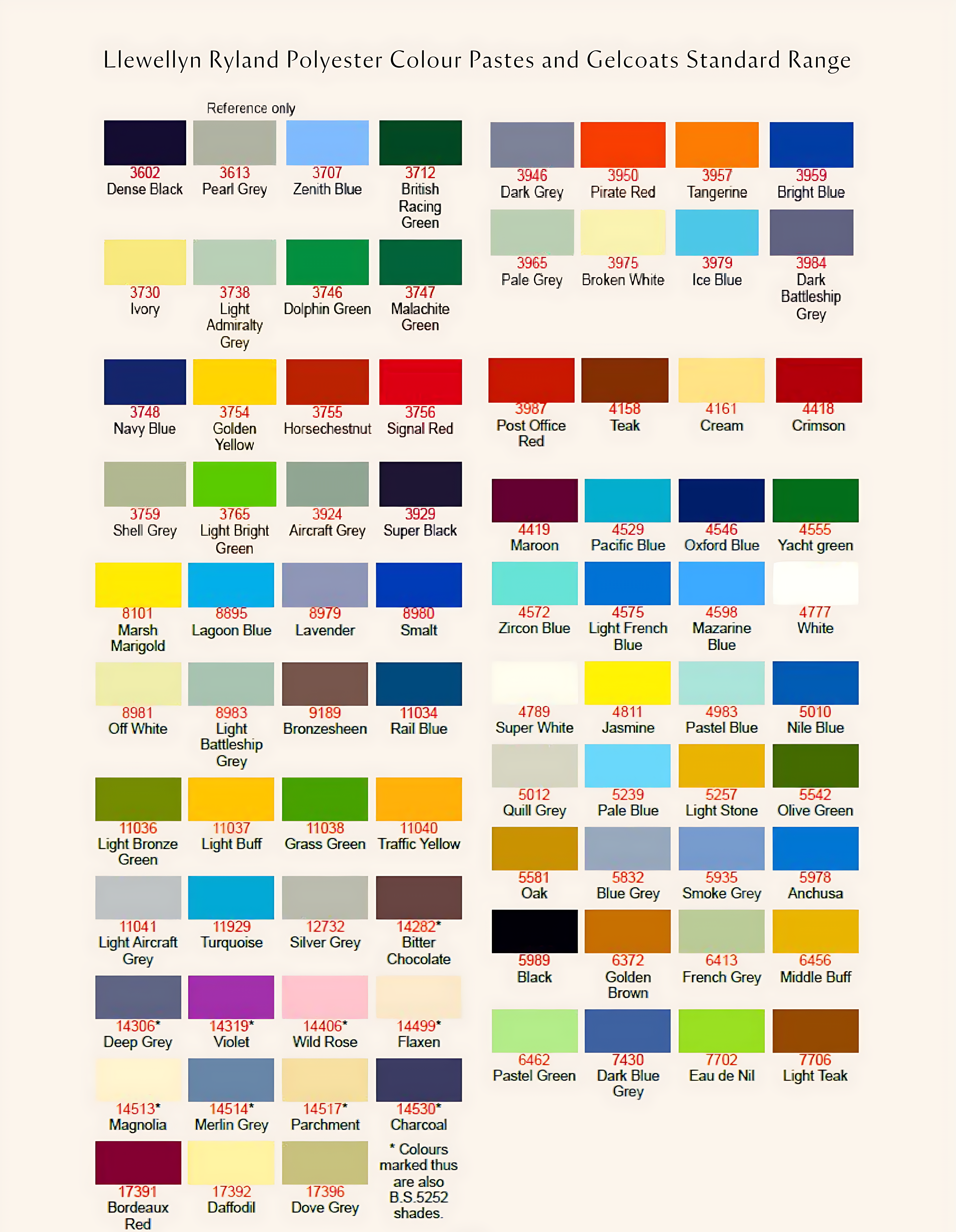 The standard range of colours can be selected from the Llewellyn Ryland colour chart. A RAL colour can also be selected for an additional £120 + VAT.